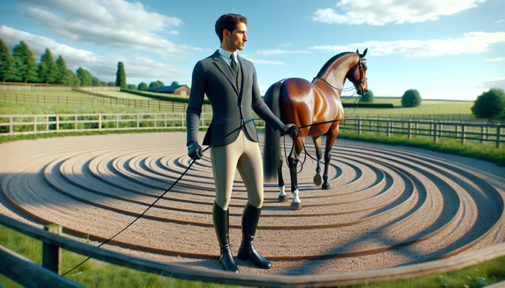 Choisissez un sol plat, non glissant, sans trous ni obstacles. Fermez les accès, retirez les objets saillants. Déroulez la longe proprement, tenez-la en boucles plates (jamais enroulée autour de la main). Placez-vous à distance sûre, gants et casque. Vérifiez l’ajustement du harnachement et l’état émotionnel du cheval.